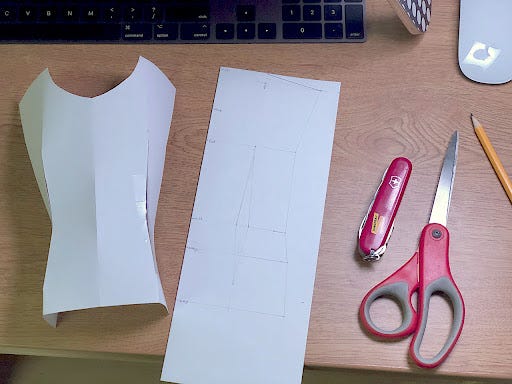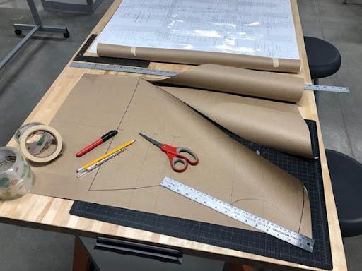 Making a scale model, making tweaks, sewing together a trial piece, fitting their model, making alterations, correcting the pattern, and repeating until satisfactory.