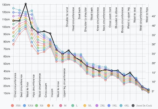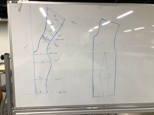 From the graph above, grading a design is not as simple as scaling all the dimensions by some ratio. A human body’s shape cannot be treated like a linear template, even when using the “standardized” sizing scale. A new pattern must be made for each body, a different model must be fitted, and separate alterations made. Each variable multiplies the amount of work needed to be done, eventually turning original designs into an insurmountable problem for today’s fast-paced fashion market. To save money, brands cut corners on plus-sized variations and often tend towards less original patterns.