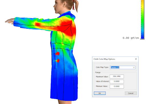 Through simulation, the two-way, simultaneous interaction between flesh and cloth can be accurately modeled. By analyzing simulation data in the form of 3D colormaps, designers can find out even more about their garment than would be possible with a physical version. From both an engineering and fashion design perspective, these cutting-edge industry CAD packages are incredible.