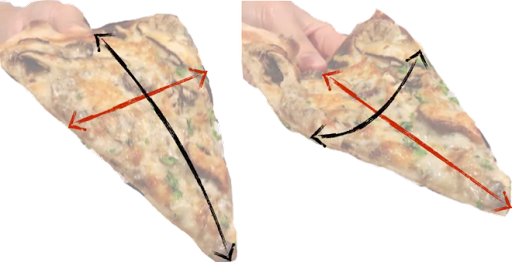 Put simply, Gauss’ theorem tells us that, if you fold fabric one way, it will become straight along the perpendicular of that fold— kind of like a slice of pizza.