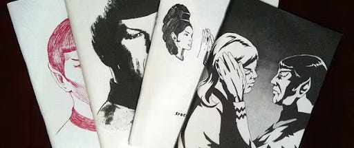 Anyone—from the engineering student who claims they’re not creative to professional artists and writers (e.g., Art Spiegelman of Maus, Ray Bradbury among others)—can and have made a zine. Due to zine’s inclusive nature, marginalized communities (i.e., women, BIPOC, LGBTQ+, disabled folks, etc.) have used this medium to express themselves since the 1960s with the first zine was ‘published’ in “May of 1930 in the USA [named] The Comet . . . by the Science Correspondent Club.” It has its origins with science fiction fans obsessed with Star Trek; Spocknalia (1967) was the one of the first zine collections to become popular. And, like fandoms on Instagram and TikTok today, zines are a way for people to create discourse about their obsessions, and even interact with celebrities themselves (i.e., Spocknalia had letters from Star Trek cast members incorporated into their zines). Yet, it is by no means limited to that genre or a white, male-dominated fan base (Kero). In fact, third-wave feminism subcultures like riotgrrrl—a subculture that is an intersection of feminism, punk music, and politics—flourished with zines because they acted as a medium to communicate information about protests and ideology.